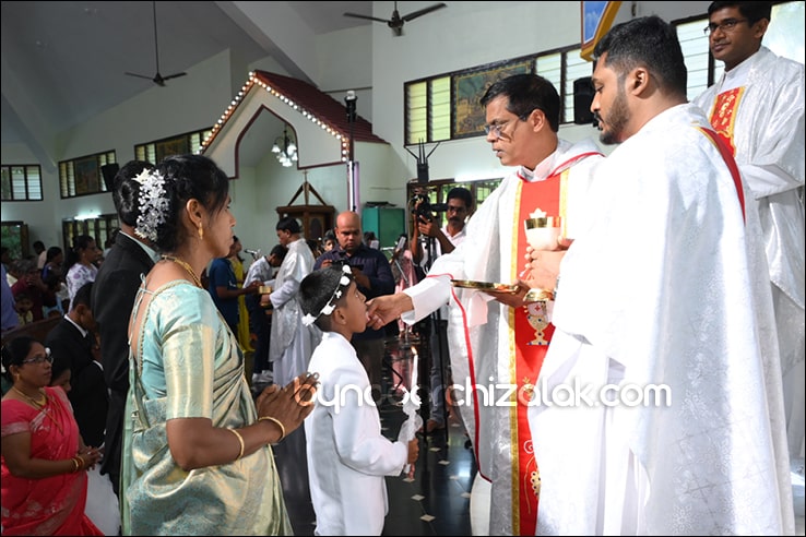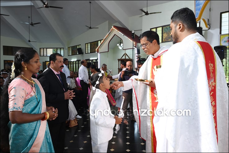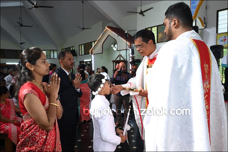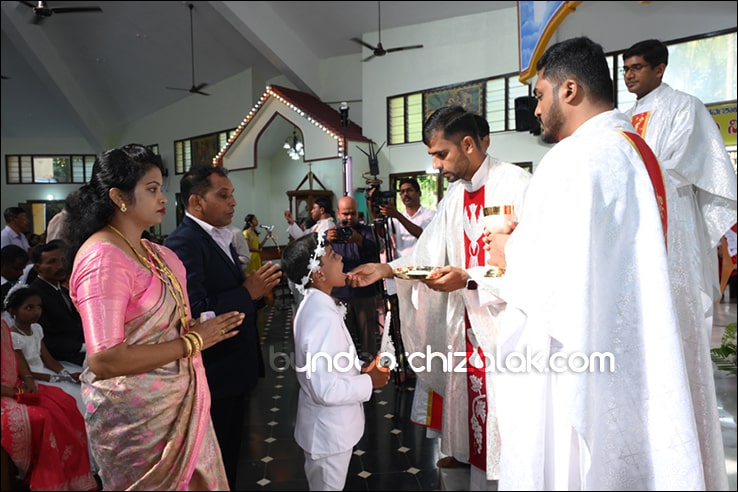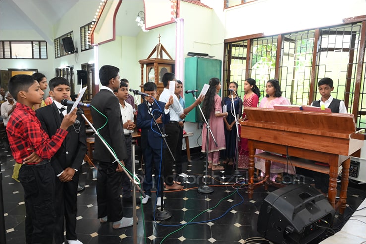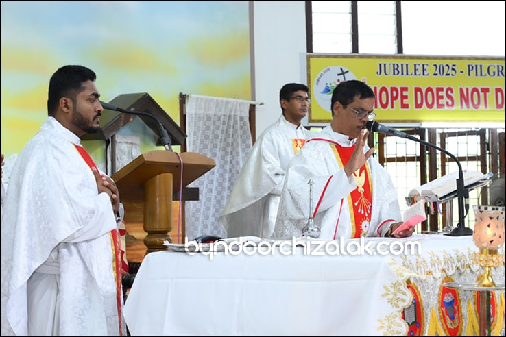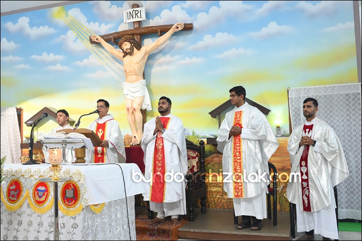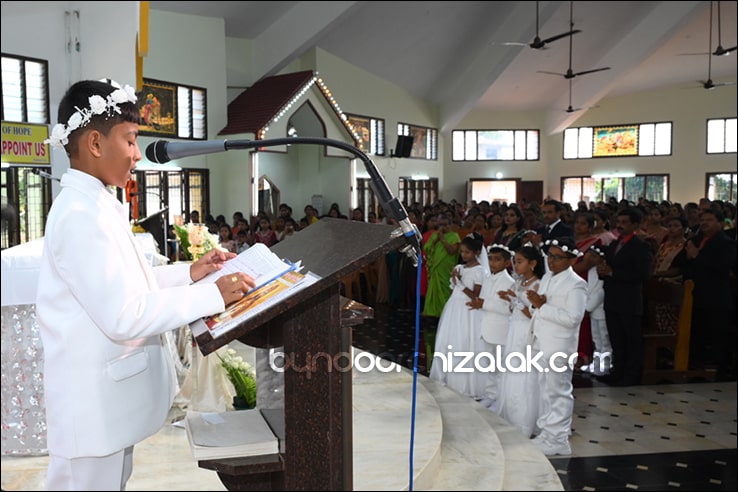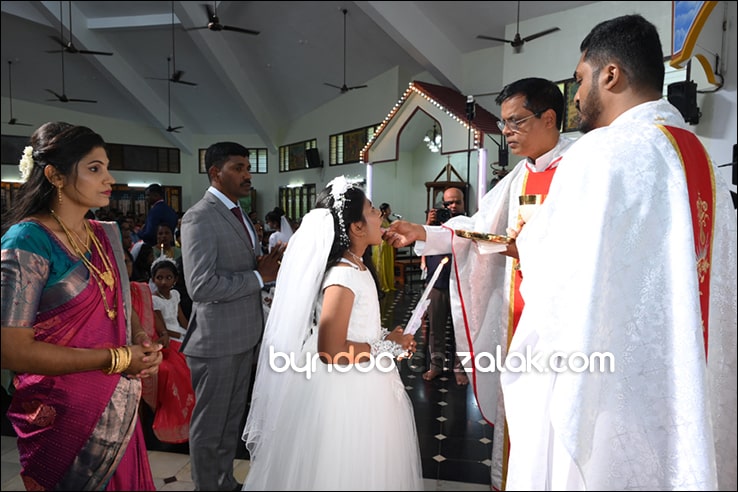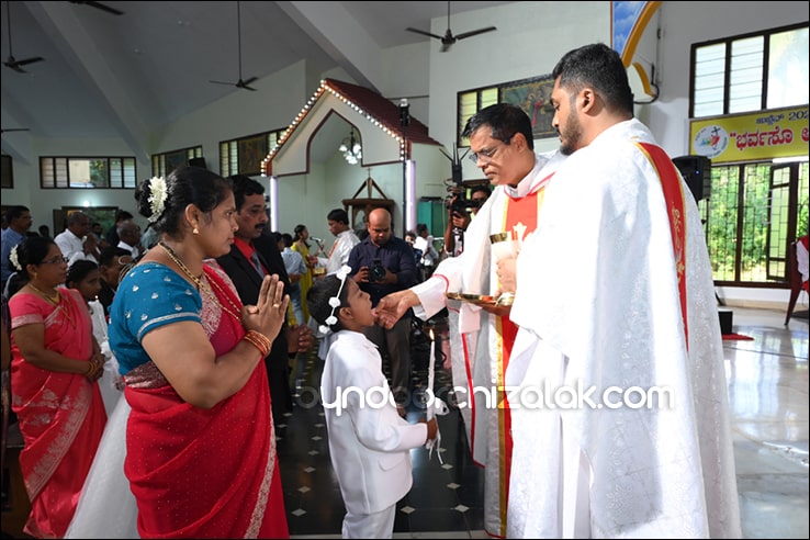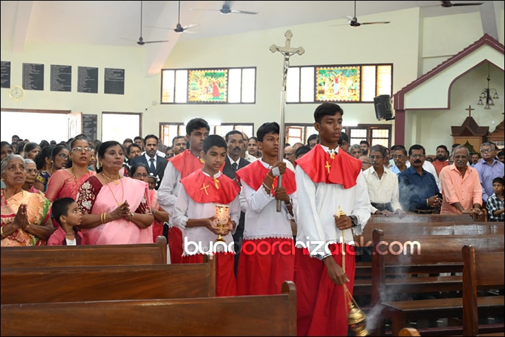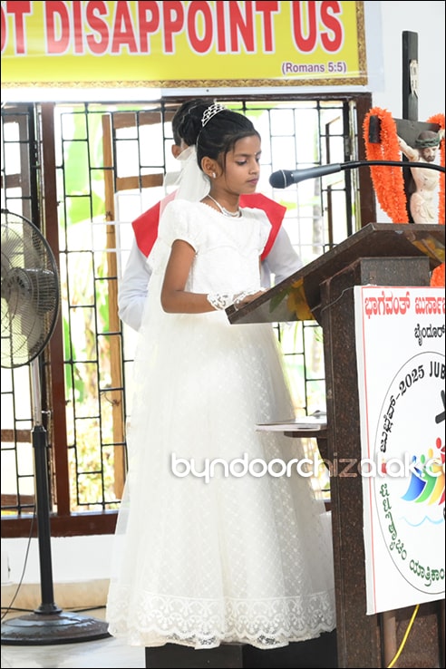 ಬೈಂದೂರ್: ಫಿರ್ಗಜೆಚಾ 15 ಭುರ್ಗ್ಯಾಂನಿ ವ್ಹಡಾ ಉಲ್ಲಾಸಾನ್ ಆಪ್ಲ್ಯಾ ಪಯ್ಲ್ಯಾ ಕುಮ್ಗಾರಾಚೊ ಸಂಭ್ರಮ್ ಆಚರಣ್ ಕೆಲೊ. ಆಜ್ ಸಕಾಳಿಂ ಚಲ್ಲ್ಲ್ಯಾ ಸಂಭ್ರಮೀಕ್ ಮೀಸಾಂತ್ ಪಯ್ಲೊ ಕುಮ್ಗಾರ್ ಸೆಂವ್ಚ್ಯಾ ಭುರ್ಗ್ಯಾಂನಿ ಆಪ್ಲ್ಯಾ ಆವಯ್-ಬಾಪಯ್ ಸಾಂಗಾತಾ ಪ್ರವೇಶ್ ಜಾವ್ನ್ ವಿಗಾರ್ ಬಾ| ವಿನ್ಸೆಂಟ್ ಕುವೆಲ್ಲೊ, ಬಾ| ಮೈಕೆಲ್ ಡಾಯಸ್, ಬಾ| ರೊಯಲ್ ನಜ್ರೆತ್, ಬಾ|ಕಿರಣ್ ನಜ್ರೆತ್ ಆನಿ ಸಹಾಯಕ್ ವಿಗಾರ್ ಬಾ| ಫೃಥ್ವಿ ರೊಡ್ರಿಗಸಾ ಸಾಂಗಾತಾ ಸಂಭ್ರಮೀಕ್ ಮೀಸಾಚೆ ಬಲಿದಾನ್ ಭೆಟಯ್ಲೆಂ.