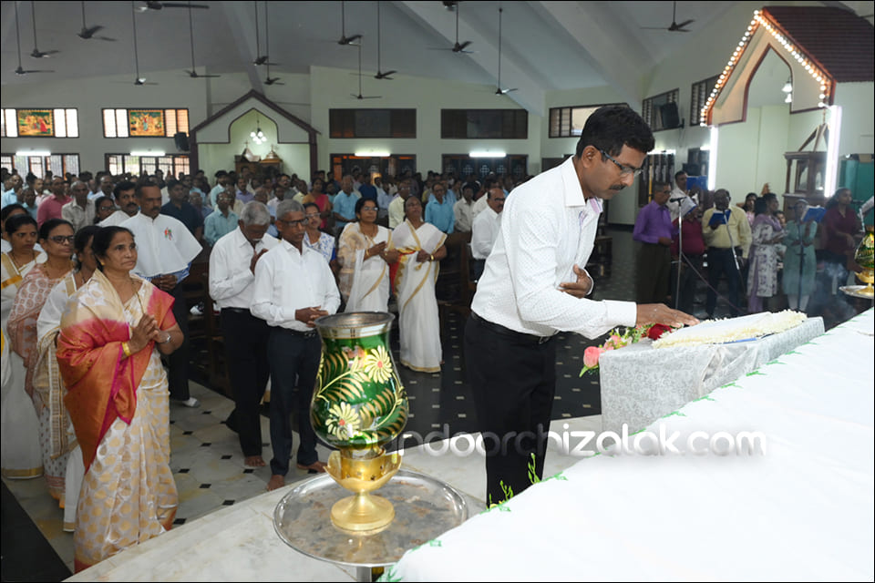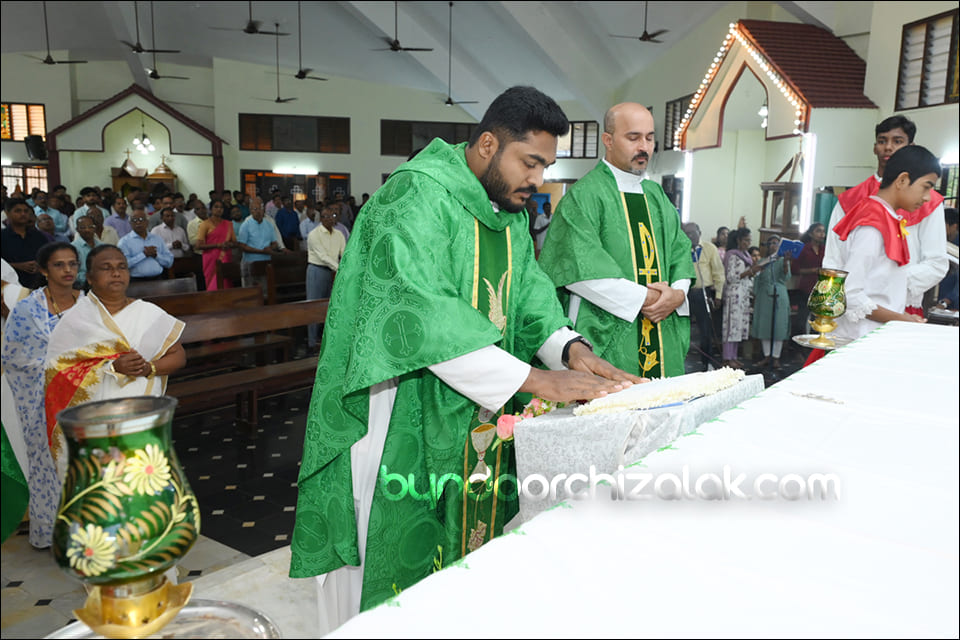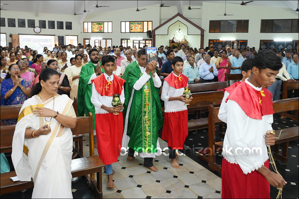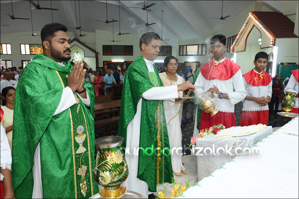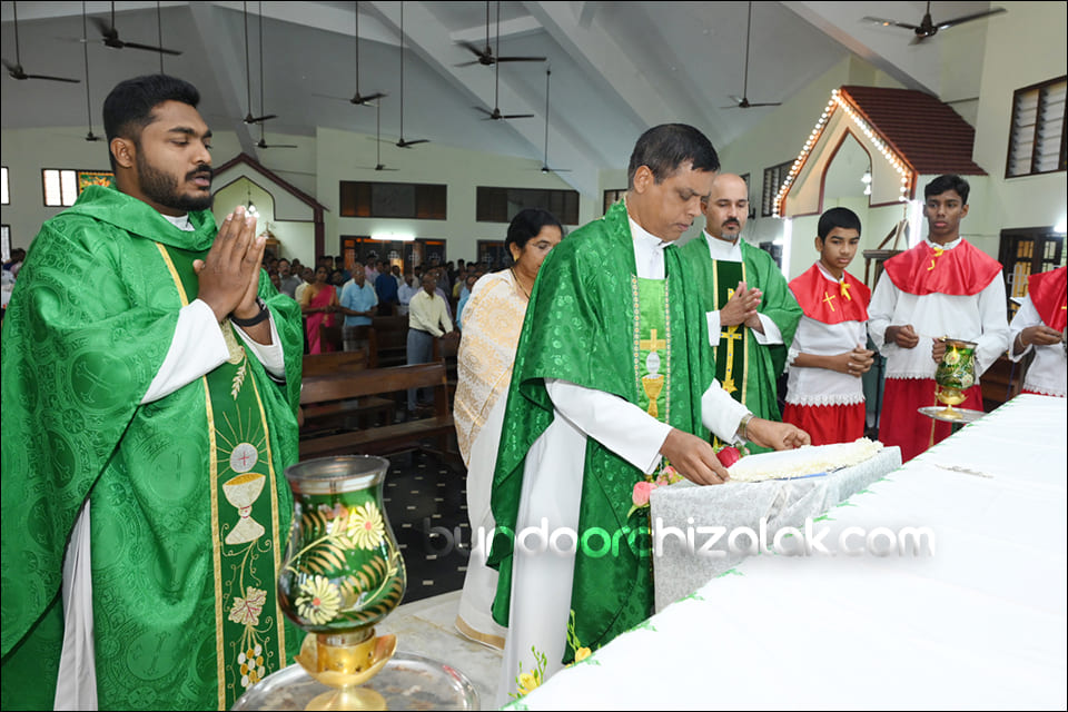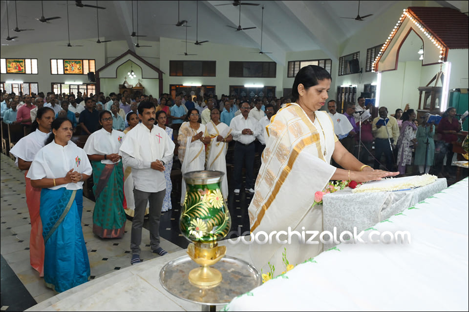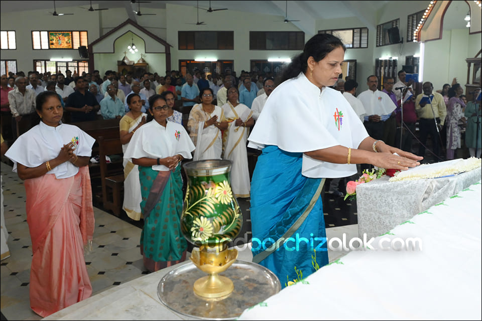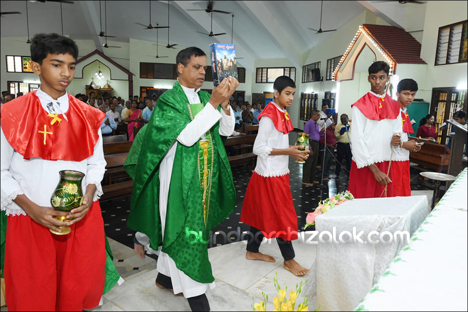ವಿಗಾರ್ ಬಾಪ್ ವಿನ್ಸೆಂಟ್ ಕುವೆಲ್ಲೊನ್ ಮೀಸಾಚಾ ಭೆಟವ್ಣೆಕ್ ಪ್ರವೇಶ್ ಜಾವ್ನ್ ಪವಿತ್ರ್ ಪುಸ್ತಕ್ ಮಾನಾಚ್ಯಾ ಜಾಗ್ಯಾರ್ ದವ್ರುನ್ ಪವಿತ್ರ್ ಪುಸ್ತಕ್ ಮಾನ್ ಕೆಲೊ. ಉಪ್ರಾಂತ್ ಬಾ| ಪೃಥ್ವಿ ರೊಡ್ರಿಗಸ್, ಬಾ| ಸಂತೋಷ್ ನಜ್ರೆತ್, ಪವಿತ್ರ್ ಪುಸ್ತಕಾಕ್ ಆಯೋಗಾಚಿ ಸಂಚಾಲಕಿ ಸಾರಾ ಫೆರ್ನಾಂಡಿಸ್, ಗೊವ್ಳಿಕ್ ಮಂಡಳಿ ಮುಕೆಲಿಂ, ಕೊವೆಂತಾಚಿ ಧರ್ಮ್ ಭಯ್ಣಿಂ ಆನಿ ಪವಿತ್ರ್ ಪುಸ್ತಕ್ ಆಯೋಗಾಚಾ ಸಾಂದ್ಯಾನಿ ಪವಿತ್ರ್ ಪುಸ್ತಕಾಕ್ ಮಾನ್ ಕೆಲೊ. ಪವಿತ್ರ್ ಬಲಿದಾನಾಂತ್ ಬಾ| ಪೃಥ್ವಿ ರೊಡ್ರಿಗಸಾನ್ ಪವಿತ್ರ್ ಪುಸ್ತಕಾಚಾ ಉತ್ರಾಂಚಿ ನಿಯಾಳ್ ಕರುನ್ ಸಂದೇಶ್ ದಿಲೊ.